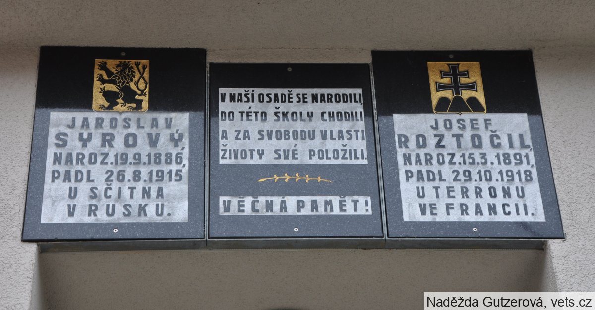 J.SYROVÝ LEG *19.9.1886 +23.8.1915, J.ROZTOČIL LEG *18.3.1891 +20.10.1918, JOS.KARELA LEG *13.3.1871 +8.2.1919, JOS. PAVLAS *22.5.1881 +29.8.1914,JOS. BERÁNEK *17.4.1890 +10.9.1914,JOS. VRBA *16.2.1886 +15.5.1915, JOS. PAVLAS *17.11.1891 +4.7.1915, FR.SYROVÝ *8.3.1891 +3.8.1915, FR.STARÝ *25.3.1895 +12.8.1915, BOH. SECKÝ *15.5.1895 +-- 1915, FR. VLK *4.10.1879 +28.6.1916, JOS. HŮRSKÝ *3.6.1875 +30.6.1916