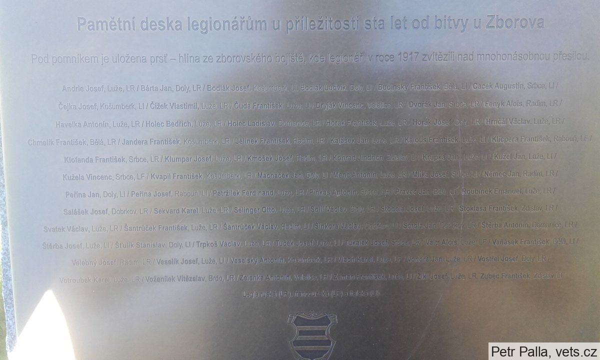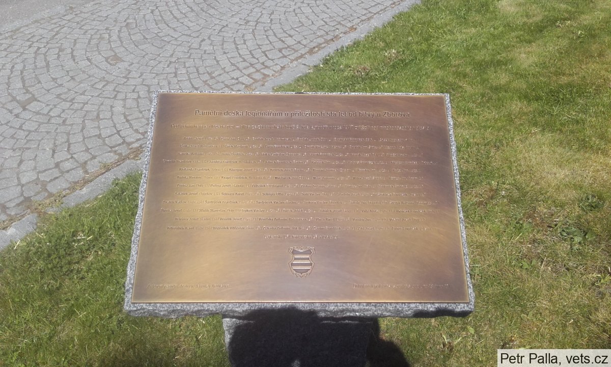 Umístění: Luže, Komenského 254, před pomníkem Obětem 1. a 2. světové válkyPamětní deska legionářům u příležitosti sta let od bitvy u Zborova