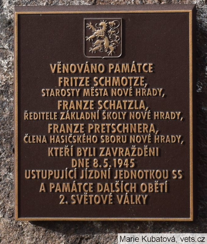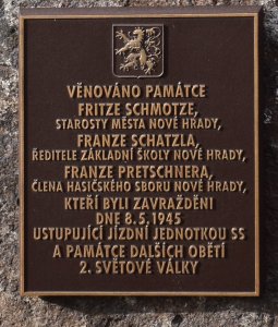 8. května 1945 příslušníci Waffen-SS nejspíše z SS-Kavallerie Ausbildungs und Ersatzregiment, kteří vraždili v Trhových Svinech, nejdříve na místním hřbitově mučili, a nakonec oběsili z okna radnice starostu Fridricha Schmotze a velitele místních hasičů Franze Pretschnera.