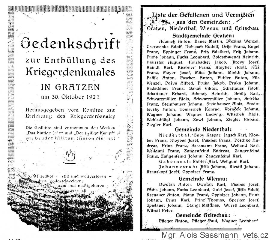 Na památku obou, ve válce padlých, bratrů z Údolí,