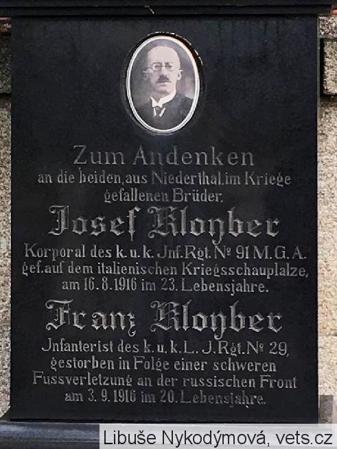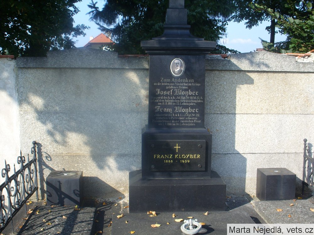 Kloyber Franz: *1897. Inft., k. k. LIR. Nr. 29, 2 (12?). Komp., veden pouze záznam o střelném zranění zranění a následné otravě krve, bez bližších podrobností. +5.9.1916 ResSpit Budweis (České Budějovice) a na tamním hřbitově pohřben.