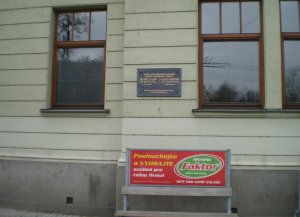 Umístění: České Budějovice, Kněžská 35, fasáda budovy jazykového centra JU (v minulosti FF JU), bývalé restaurace a kavárny U Volbrechtů