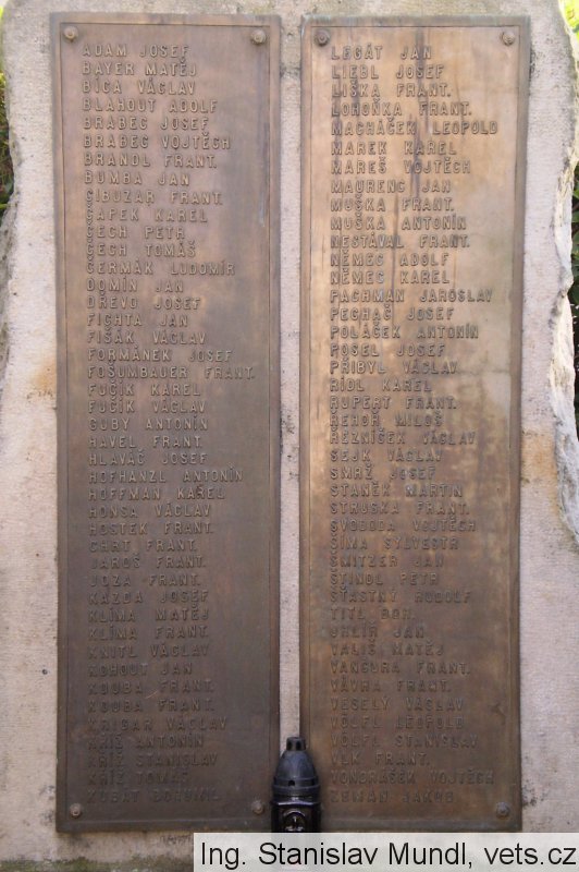 ADAM JOSEF, BAYER MATĚJ, BÍCA VÁCLAV, BLAHOUT ADOLF, BRABEC JOSEF, BRABEC VOJTĚCH, BRANDL FRANT., BUMBA JAN, CIBUZAR FRANT., ČAPEK KAREL, ČECH PETR, ČECH TOMÁŠ, ČERMÁK LUDOMÍR, DOMÍN JAN, DŘEVO JOSEF, FICHTA JAN, FIŠÁK VÁCLAV, FORMÁNEK JOSEF, FOŠUMBAUER FRANT., FUČÍK KAREL, FUČÍK VÁCLAV, GUBY ANTONÍN, HAVEL FRANT., HLAVÁČ JOSEF, HOFHANZL ANTONÍN, HOFFMAN KAREL, HONSA VÁCLAV, HOSTEK FRANT., CHRT FRANT., JAROŠ FRANT., JOZA FRANT., KAZDA JOSEF, KLÍMA MATĚJ, KLÍMA FRANT., KNITL VÁCLAV, KOHOUT JAN, KOUBA FRANT., KOUBA FRANT., KRIGAR VÁCLAV, KŘÍŽ ANTONÍN, KŘÍŽ STANISLAV, KŘÍŽ TOMÁŠ, KUBÁT BOHUMIL