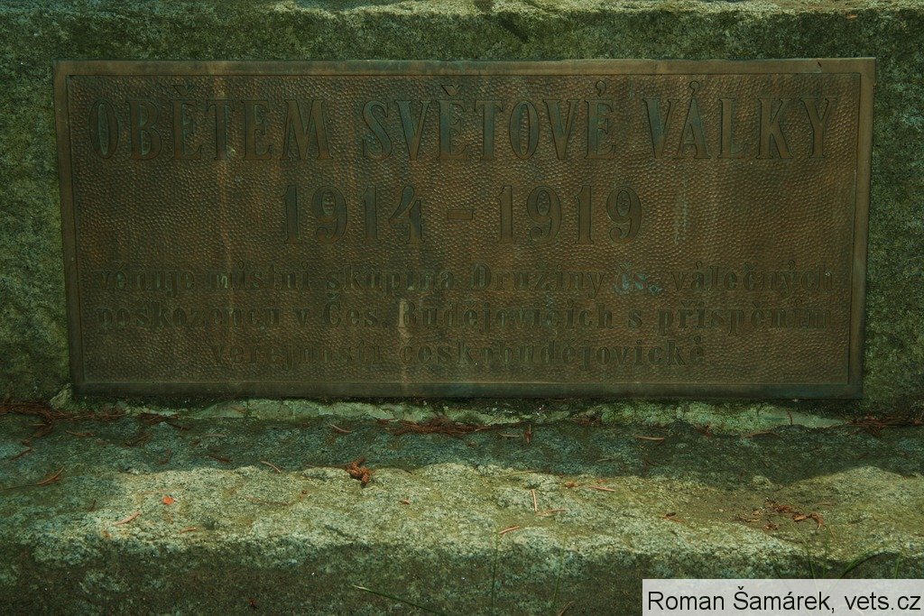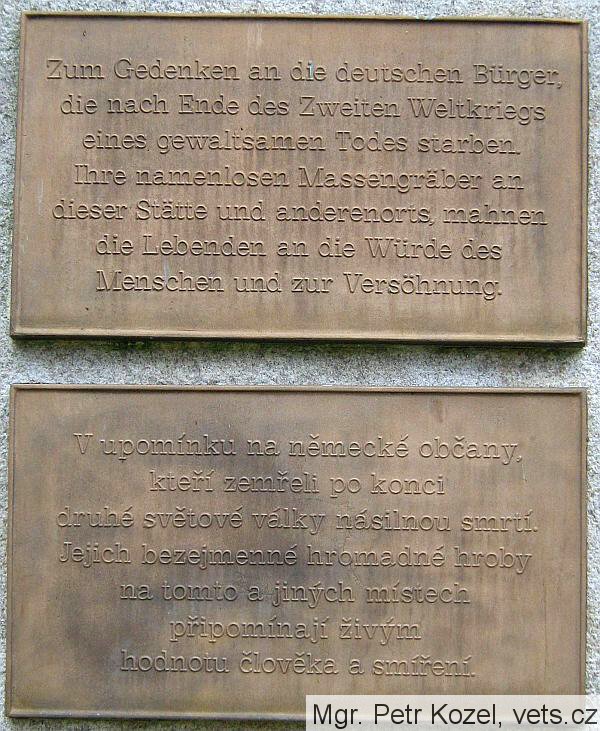 Těsně po skončení 2. světové války přibližně v těchto místech čeští četníci zastřelili a pohřbili 24 německých osob. Pomník byl odhalen 20. května 1995. Celou přípravu i vlastní odhalení provázela tehdy poměrně bouřlivá diskuze. Desky nechali osadit příslušníci Heimatkreis Budweis. (Srv. D. KOVÁŘ, Budějovické hřbitovy, s. 31.)