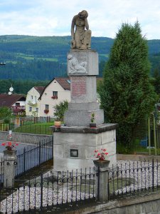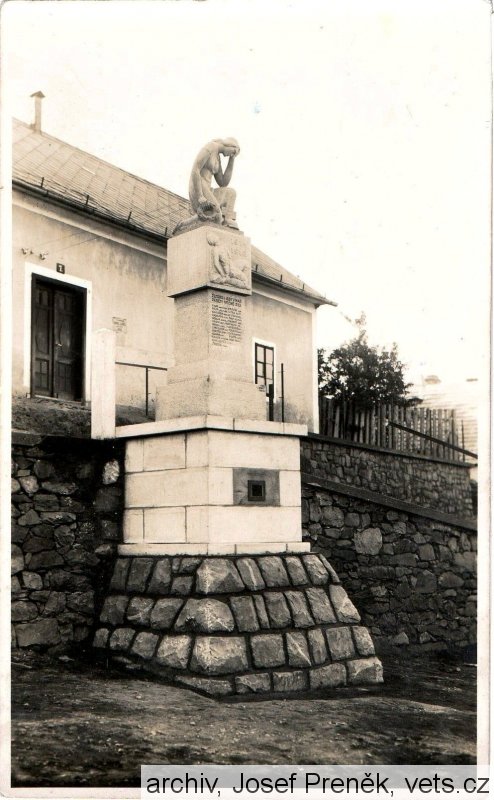 Pomník vytvořil ak. sochař Rudolf Kabeš z Tábora. Slavnostně byl posvěcen dne 17. června 1934. Byla u něj sloužena vojenská polní mše za účasti mnoha kněží z okolí, vojáků a dalších korporací. Zhotovení pomníku tehdy stálo 4500 Kč , podezdívka a ostatní práce 1500 Kč. Pomník, kdysi nazývaný „HELENKA“ si však na svém místě dlouho nepobyl. Při úpravách návsi a dostavbě silnice Bohumilice – Štítkov, kdy bylo zapotřebí rozšíření silnice ve vsi, došlo k jeho stržení. Později byl znovu postaven nedaleko původního místa.