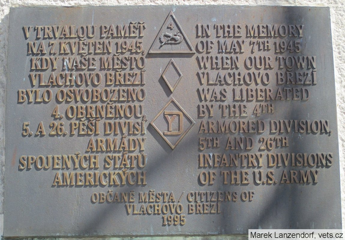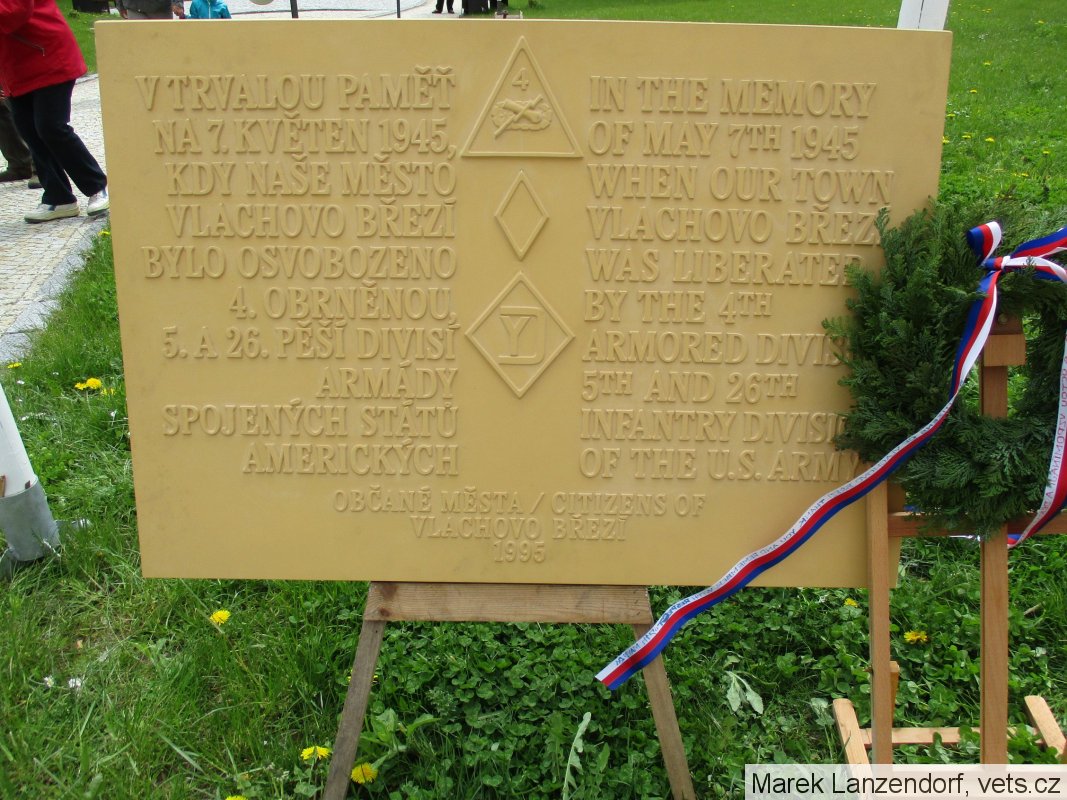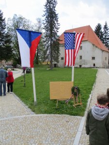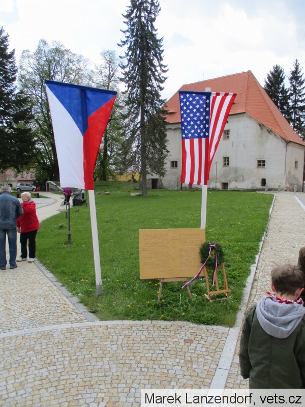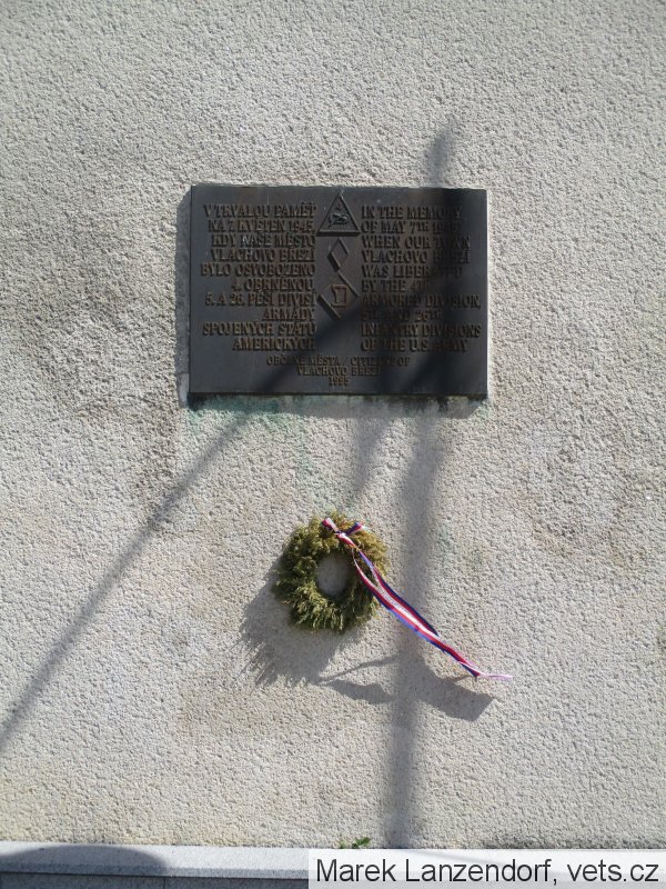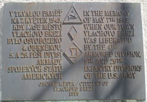 Oslavy osvobození americkou armádou se konají na dvoře zámku Vlachovo Březí, proto sem byla umístěna na kopie pamětní desky - viz foto v příloze.