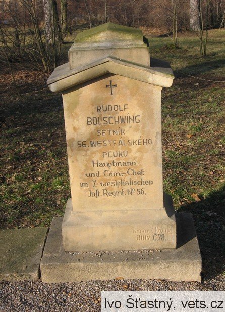 Bolschwingh, v. Rudolph: Hauptm., 7. Westphälisches Infantrie-Regiment Nr. 56, Füsilier-Bataillon. Příslušný v Neuss. Tĕžce zranĕn schwer 3.7.1866 (pravá ruka a levé stehno). +21.7.1866 lazaret Nechanice. (zdroj: Verlustlisten der Preußischen Armee 1866)