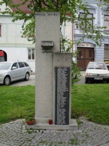 Umístění: Husinec, Prokopovo náměstí, Pomník byl přesunut do travnaté plochy na druhou stranu kostela Povýšení sv. Kříže, před dům čp. 55 (Krčma) - dříve na jižní straně kostela.