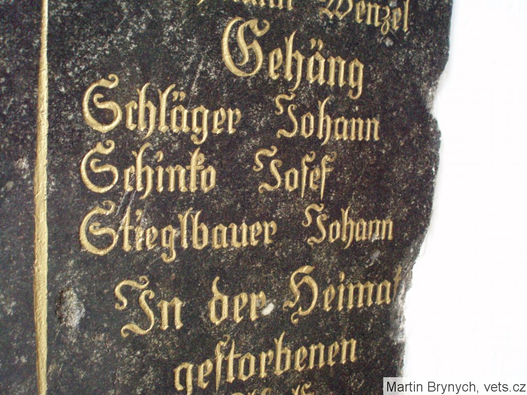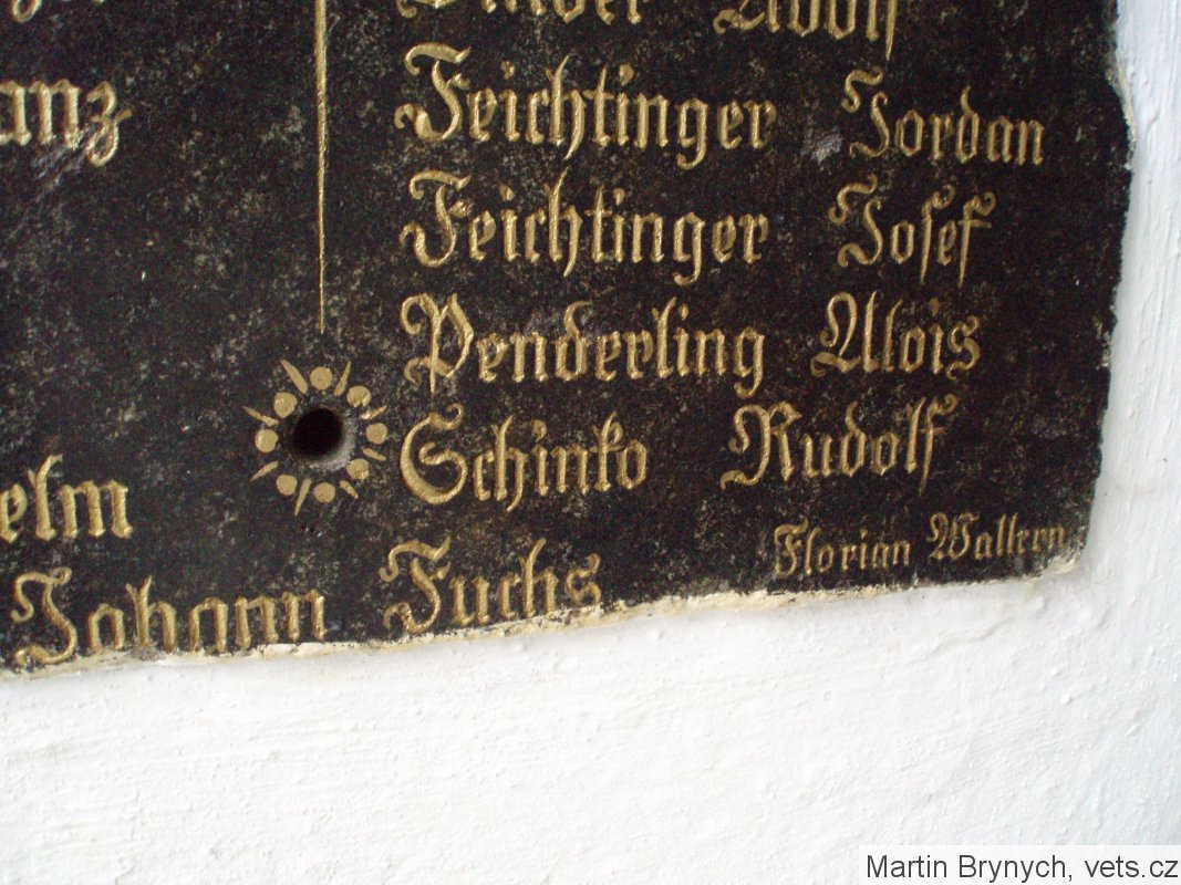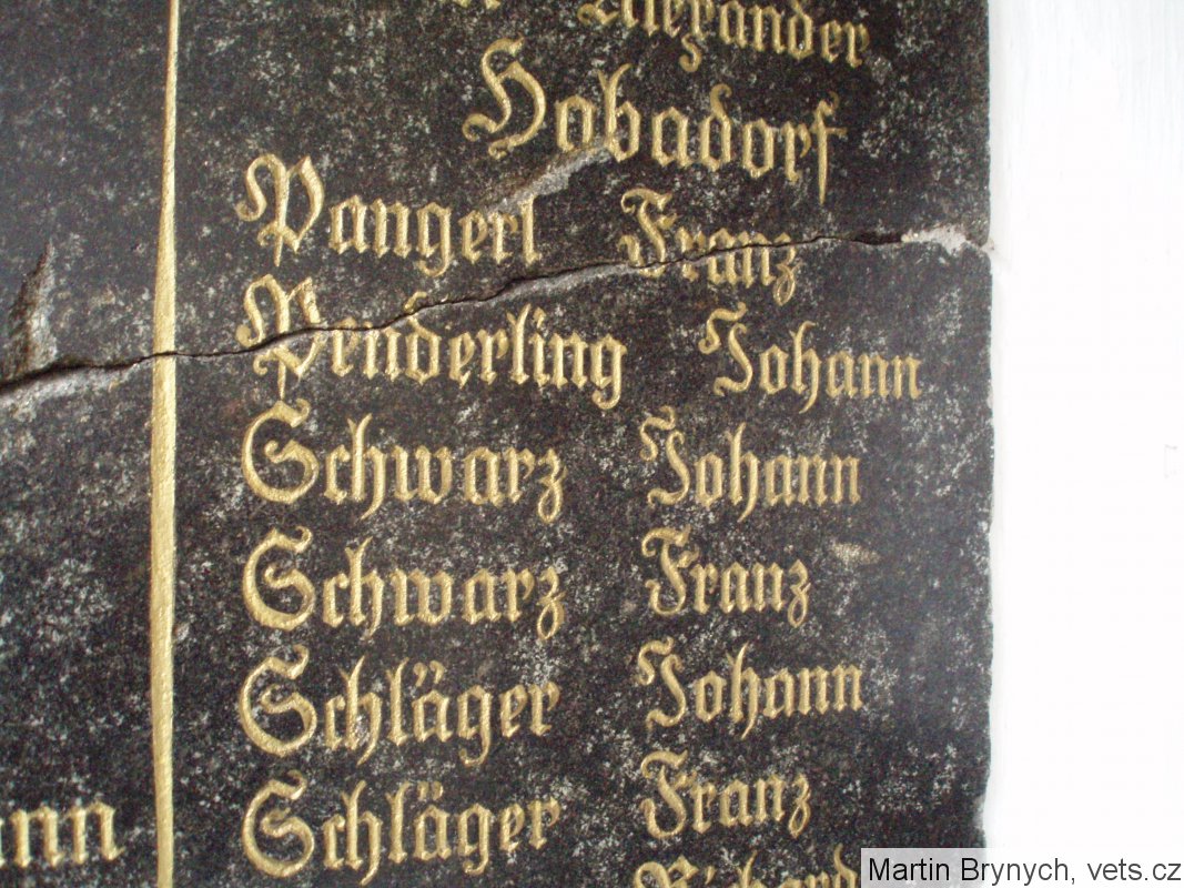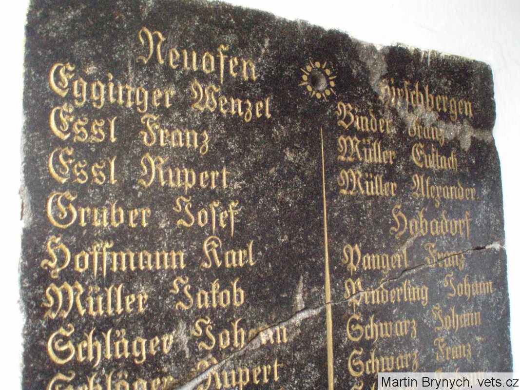 Deska pochází z pomníku který byl ve dvacatých létech minulého století postaven v Nové Peci. Po druhé světové válce byl zbourán. (Petr Směja)