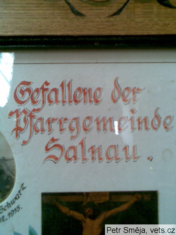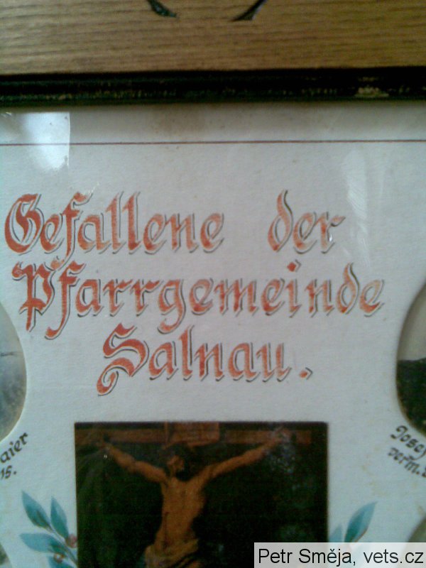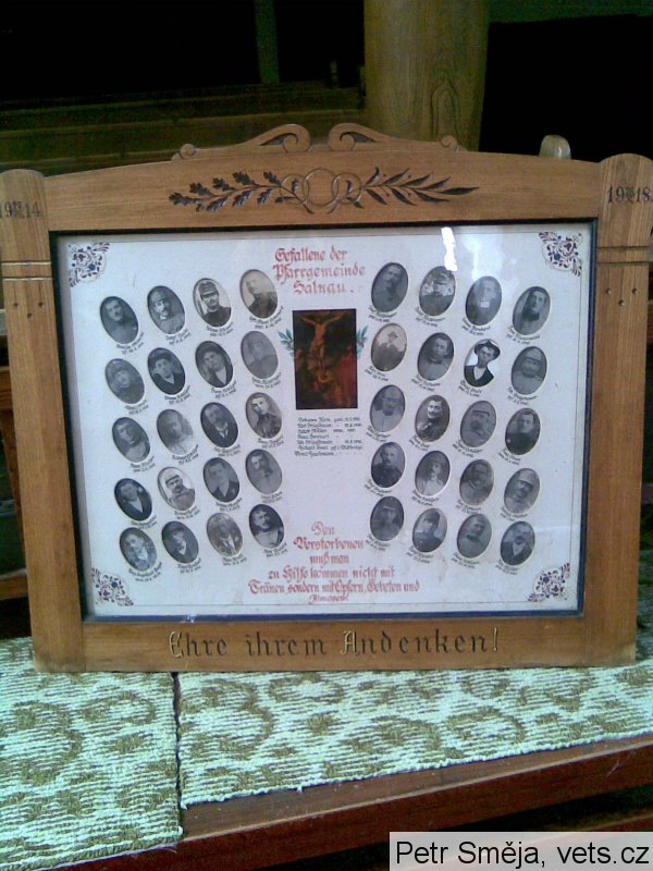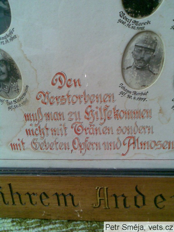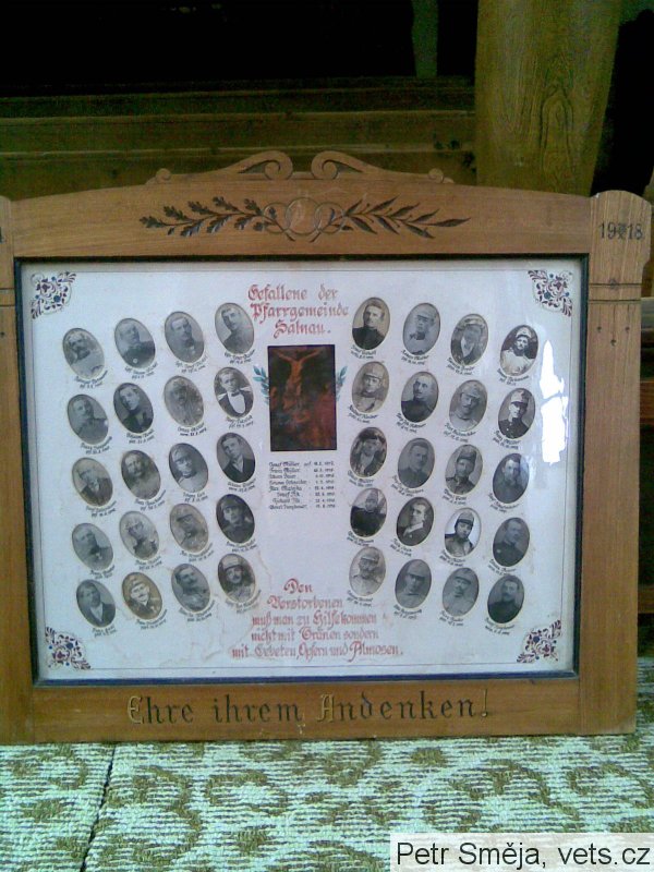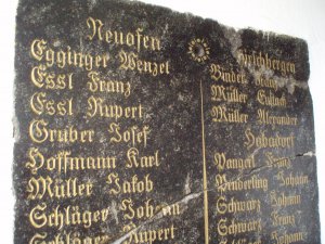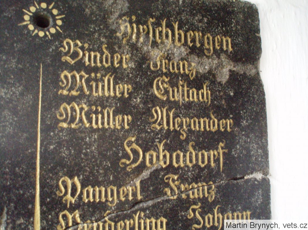Deska pochází z pomníku který byl ve dvacatých létech minulého století postaven v Nové Peci. Po druhé světové válce byl zbourán. (Petr Směja)