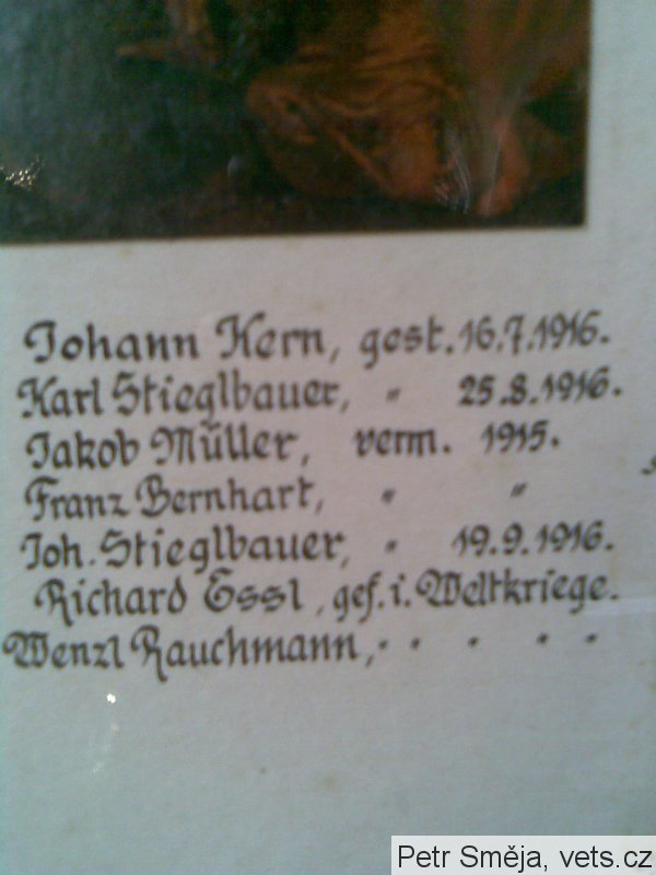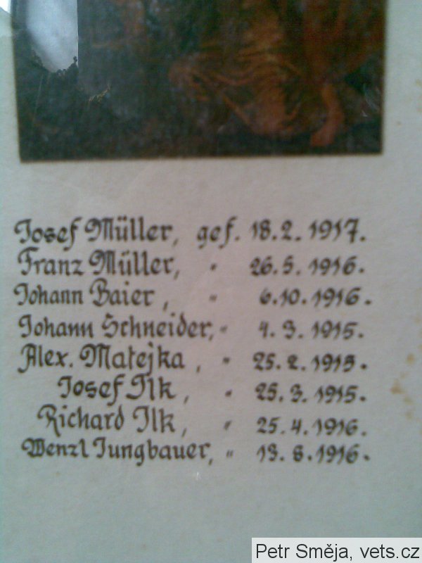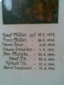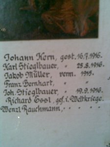 Bernhard Albert, Bernhard Johann, Bernhard Franz, Feichtinger Ignaz, Feichtinger Rudolf, Hoffmann Adolf, Jyt (Jyf?) Josef, Jyt (Jyf?) Rupert, Jungbauer Wenzel, Kinderrmann Franz, Kern Johann, Stiny Karl, Slastchy Wilhelm, Johann Fuchs