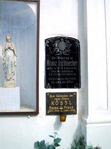 Umístění: Volary, Zlatá stezka, hřbitov, na zdi kapleNápis: