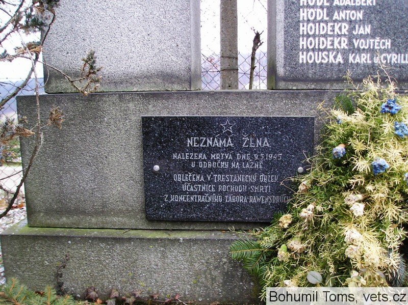 Umístění: Prachatice, Vodňanská, hřbitov, dolní část, na Pomníku Obětem 1. světové válkyNEZNÁMÁ ŽENA