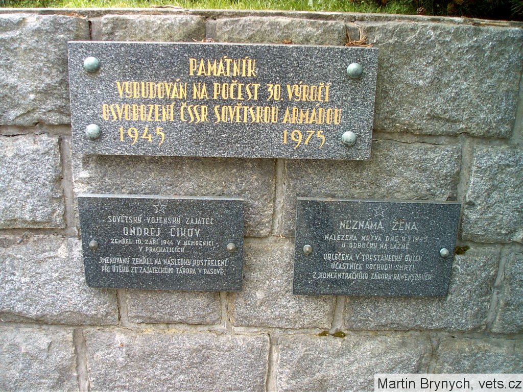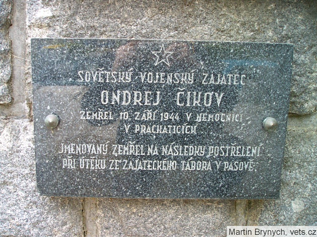 Umístění: Prachatice, Vodňanská, hřbitov, dolní část, na Pomníku Obětem 1. světové válkySOVĚTSKÝ VOJENSKÝ ZAJATEC
