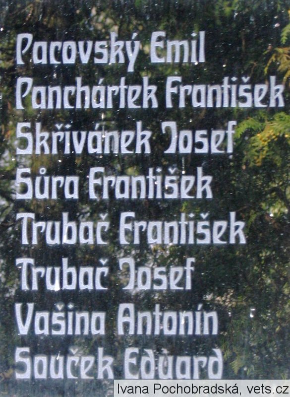 Akštýn Alois, Akštýn Jaroslav, Akštýn Josef, Bendák František, Dědič Václav, Horký František, Hrdý Josef, Hůšek Václav, Hynek František, Kněžour Josef st., Kněžour Josef ml., Kohout Jaroslav, Košťál Alois, Lejp Josef, Maršík Václav, Pacovský Emil, Panchártek František,Skřivánek Josef, Sůra František, Trubač František, Trubač Josef, Vašina Antonín, Souček Eduard