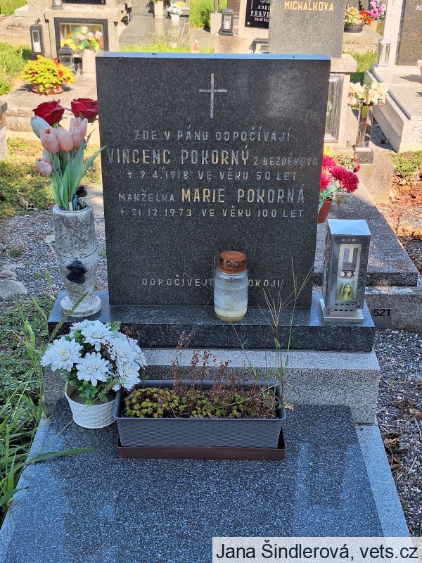 Vincenc Pokorný, dělník p. pl. 21, nar. 1868 Zaječice okr. Chrudim, datum a místo úmrtí: 9. dubna 1918 posádková nemocnice N.1, Vídeň IX., Dolní Rakousko, datum pohřbu: 15. dubna 1918 Vejvanovice, okr. Chrudim, opsáno podle matriky p. pl. 21. úmrtní kniha: tom., fol. XIII. - 160.