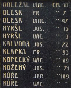 Doležal Jaroslav, nar. 7.5.1921 Roudnice, zemřel 1.4.1945 na úřadovně gestapa v Jihlavě, pohřben 4.5.1945 tamtéž, exhumován a převezen do Roudnice (zdroj: https://evidencevh.army.cz/Evidence/detail-osoby?id=45542 )