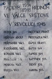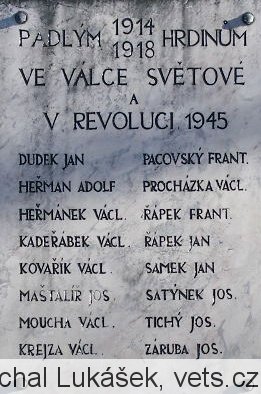 DUDEK JAN, HEŘMAN ADOLF, HEŘMÁNEK VÁCLAV, KDEŘÁBEK VÁCLAV, KOVAŘÍK VÁCLAV, MAŠTALÍŘ JOSEF, MOUCHA VÁCLAV, KREJZA VÁCLAV, PACOVSKÝ FRANTIŠEK, PROCHÁZKA VÁCLAV, ŘÁPEK FRANTIŠEK, ŘÁPEK JAN, SAMEK JAN, SATÝNEK JOS., TICHÝ JOSEF, ZÁRUBA JOSEF