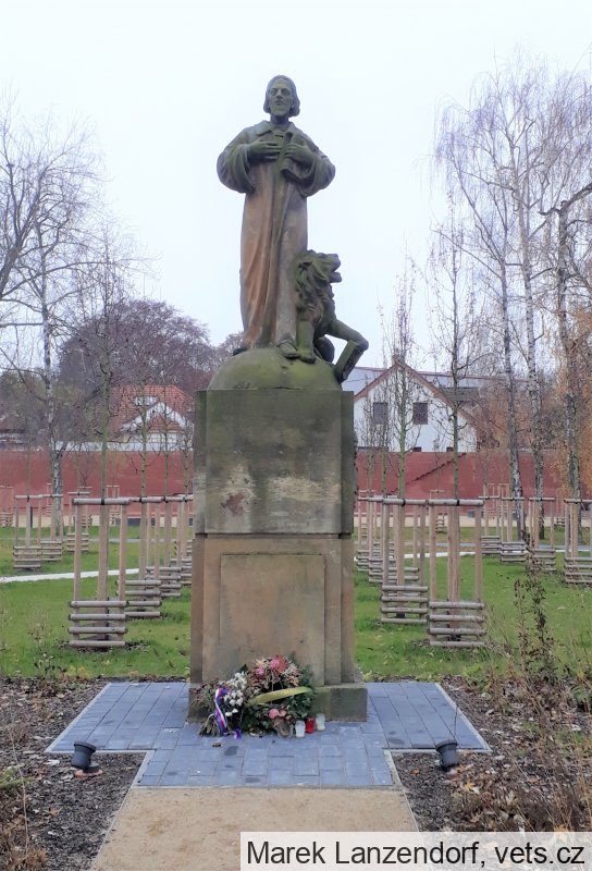 Umístění: Praha 18, Schoelerova, Třeboradice, socha sv. Václava s pamětní deskou v parčíku u křižovatky Pšovanská x SchoelerovaNápis: