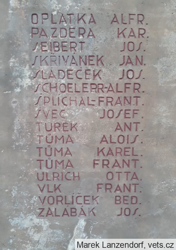 Umístění: Praha 18, Schoelerova 95, Třeboradice, pomník v parčíku naproti č.p. 95Nápis: