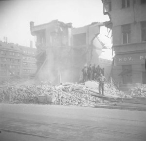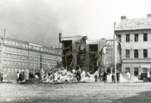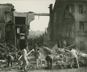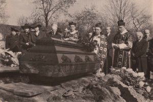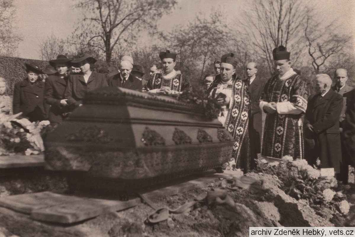 Fotky z archivu rodiny - rodina Hebkých, pohřeb, fotografie výrobní haly, dům po náletu