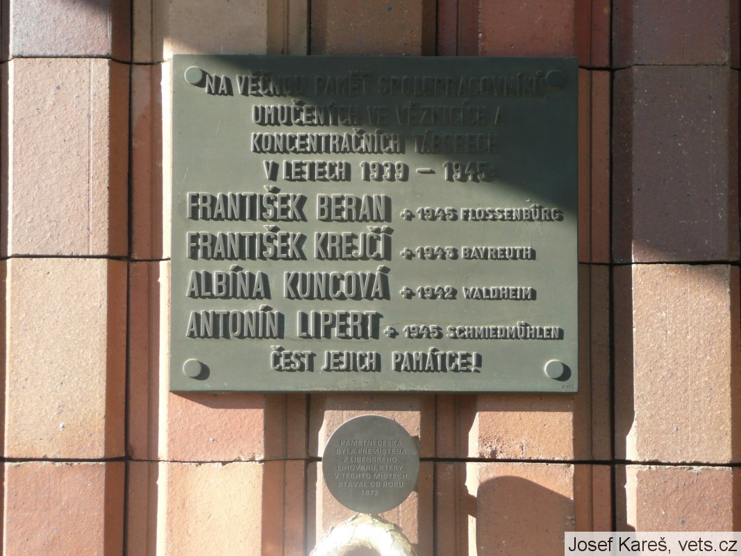 PAMĚTNÍ DESKA BYLA PŘEMÍSTĚNA Z LIBEŇSKÉHO PIVOVARU, KTERÝ V TĚCHTO MÍSTECH STÁVAL OD ROKU 1872