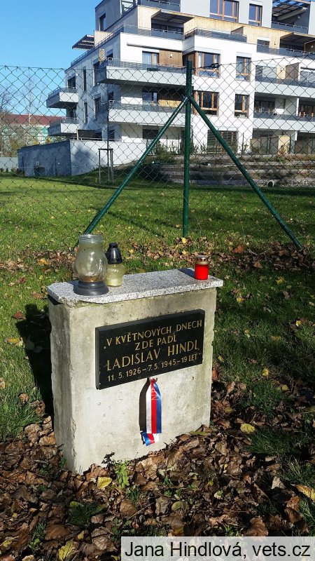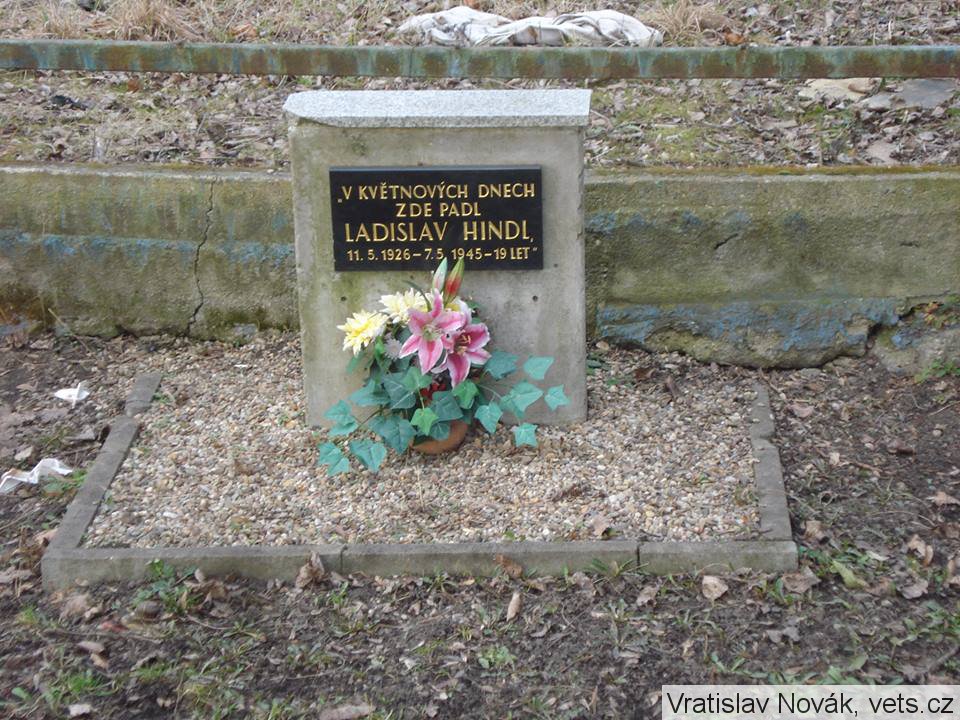 Ladislav Hindl, kontrolor ČMS. 11.5.1926 - 7.5.1945, bytem Praha IX, Domovská č.154, padl u Rokytky. Byl 26.května 1945 pohřben na Olšanech do hrobu IV-8-237.