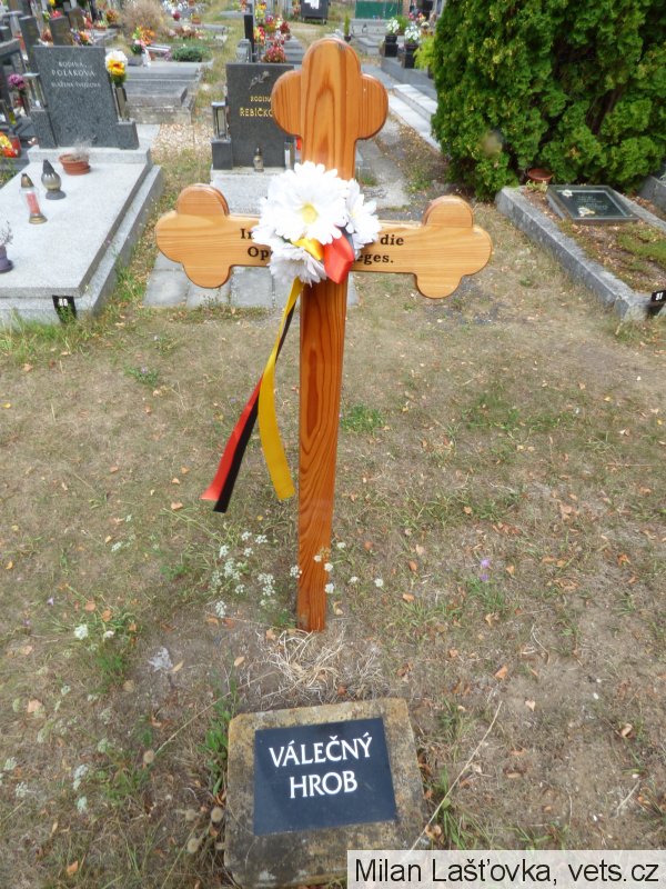 dle informace pracovníka, který se o válečné hroby stará, se jednalo o policejního úředníka, který spolupracoval s Čechy a byl zastřelen Gestapem. Proto je také pohřben v civilní části hřbitova.