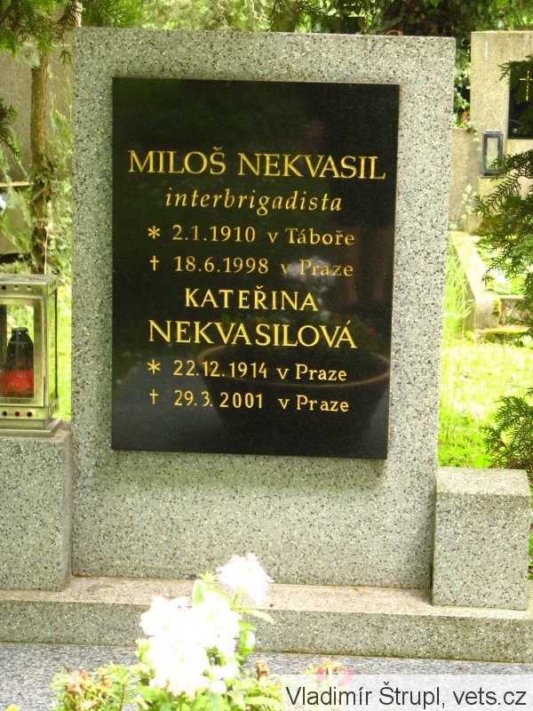Miloš Nekvasil: 2.1.1910 Tábor, v rodině truhláře. Studoval střední školu v Praze, vstoupil do KSČ. Během vojenské služby několikrát krátkodobě vězněn za komunistickou propagandu. Ve 30. letech se dostal jako tzv. mladý kádr do Sovětského svazu. Během jeho pobytu v SSSR vypukla občanská válka ve Španělsku. Společně s dalšími dobrovolníky nastoupil na důstojnickou školu, Frunzeho vojenskou akademii. Do Španělska se dostal s pomocí falešných dokumentů. Ve Španělsku byl Miloš Nekvasil velitelem motostřeleckého praporu TGM. Během bojů byl jednou raněn, ale jelikož se jednalo o čistý průstřel, neměl později vážnější zdravotní komplikace. Interbrigády byly rozpuštěny ještě před koncem občanské války, vojákům byl po složení zbraní povolen přechod do Francie. Po vypuknutí druhé světové války chtěl M. Nekvasil vstoupit do čs. armády ve Francii, ale byl odmítnut. Roli v tom hrála nepochybně skutečnost, že byl členem KSČ. Pravděpodobně byl považován za nedůvěryhodného. Po porážce Francie odešel do svobodné části, do Marseille. Na sklonku roku 1943 se zapojil do partyzánského hnutí, dělal spojku mezi svobodnou a okupovanou částí Francie. Za svoji činnost obdržel Francouzský válečný kříž. Na podzim roku 1945 návrat do Československa. Roku 1949 byl zatčen a vyloučen z KSČ. Bez soudu byl skoro tři roky vězněn v samovazbě. Pak následovaly obvyklé perzekuce. Nakonec si našel práci v Tyršově muzeu tělesné výchovy a sportu. Ačkoliv byl v 60. letech rehabilitován, nepodlehl pokušení vrátit se do KSČ. V roce šedesátého výročí interbrigád byl spolu s ostatními dobrovolníky pozván do Španělska. V tomto roce španělský parlament jednohlasně potvrdil rozhodnutí z doby občanské války, že všichni členové mezinárodních brigád mají nárok na španělské občanství. Rezoluce byla přijata v době občanské války, protože dobrovolníkům hrozil postih po návratu do vlasti, roku 1996 se však jednalo o čestnou výsadu a ocenění nasazení dobrovolníků.