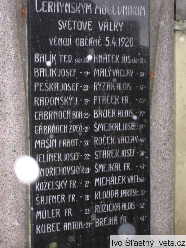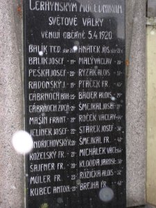 Balík Teo. stár 26 r, Hnátek Jos. stár 27 r, Balík Jos. 19, Malý Václav 20, Peška Josef 20, Ryzák Alois 37, Radoňský J. 19, Ptáček Fr. 45, Cábrnoch Boh. 25, Bauer Alois 29, Cábrnoch Zdeň. 21, Šmejkal Josef 27, Mašín Frant. 27, Roček Václav 44, Jelínek Josef 22, Stárek Josef 30, Jindřichovský K. 21, Šmejkal Fr. 41, Koželský Fr. 27, Michálek Václ. 46, šajfner Fr. 20, Klouda Jarosl. 30, MÜler Fr. 23, Růžička Alois 32, Kubec Anton 21, Brejha Fr. 41