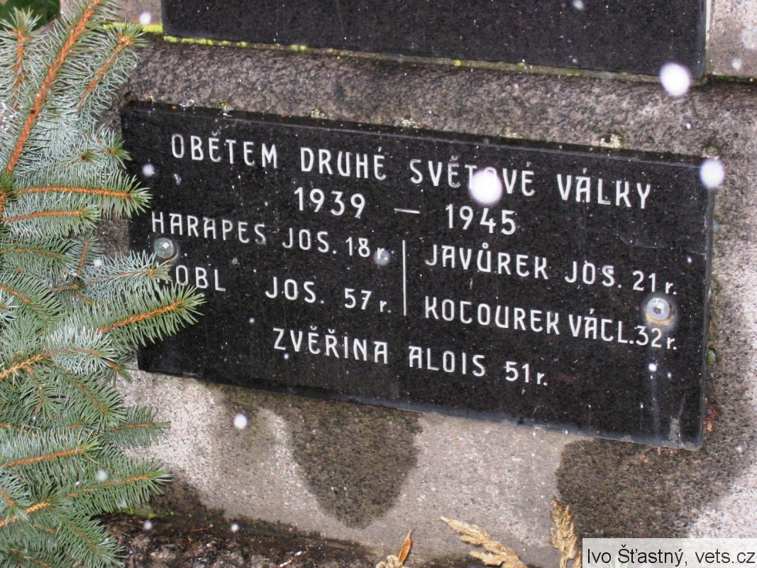 Harapes Jos. 18 r., Javůrek Jos. 21 r., Hobl Jos. 57 r., Kocourek Václ. 32 r., Zvěřina Alois 51 r.