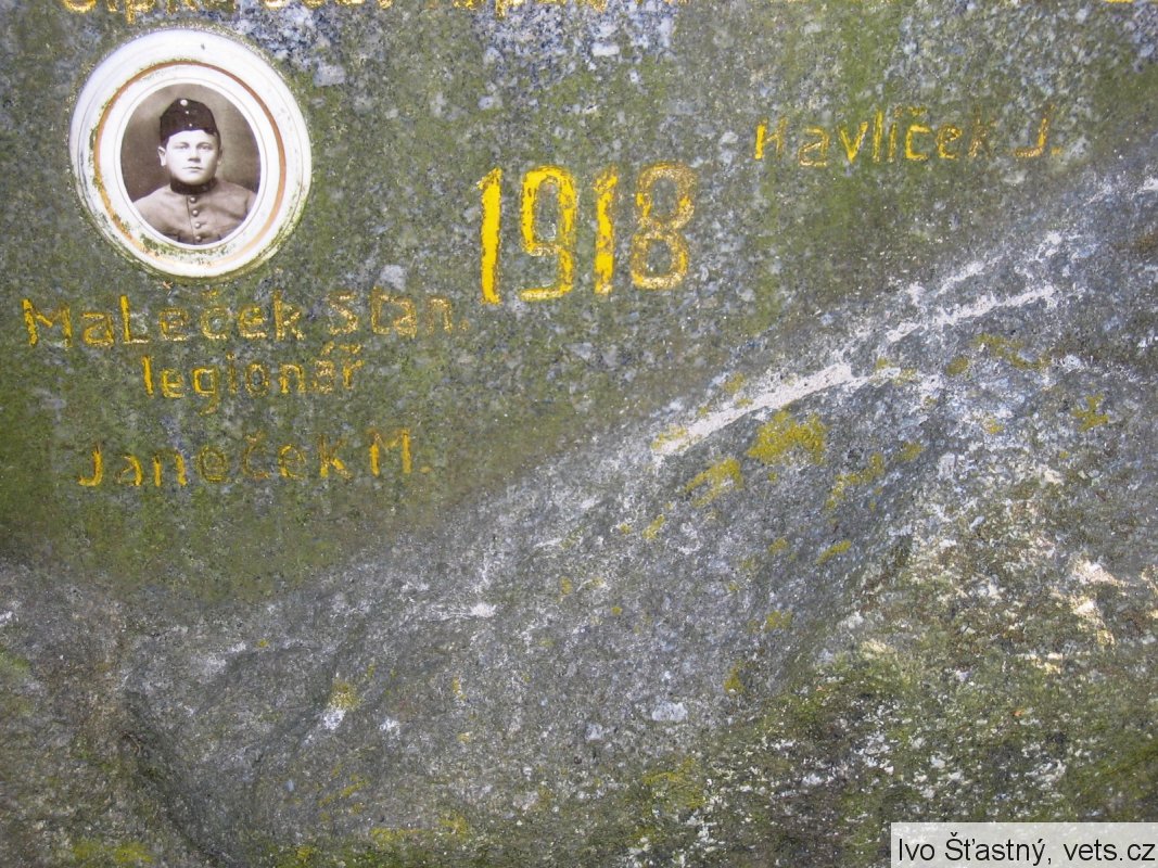 Maleček Stanislav, nar. 14.6.1893, Kolín. V RU armádě sloužil u 2. hulánského pluku jako vojín. Zajat 5.7.1916 u Sabanova: Do ČS legií v Rusku se přihlásil v Kyjevské gubernii. Zařazen 11.10.1917 jako vojín k 8. střeleckému pluku. Padl 4.10.1918 na Viž. Tagilu, Uralská fronta, pohřben tamtéž.