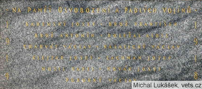 BAHENSKÝ FRANTIŠEK, BROŽ FRANTIŠEK, BROŽ ANTONÍN, DOLEŽAL ALOIS, CHARVÁT VÁCLAV, KASALICKÝ VÁCLAV, KLEJZAR JOSEF, LACHMAN JOSEF, MUSIL KAREL, NOVÁK JOSEF, POKORNÝ VÁCLAV