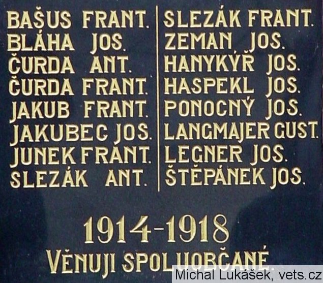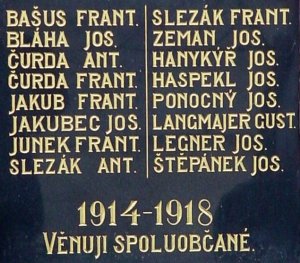 BAŠUS FRANT., BLÁHA JOS., ŠURDA ANT., ŠURDA FRANT., JAKUB FRANT., JAKUBEC JOSEF, JUNEK FRANT., SLEZÁK ANT., SLEZÁK FRANT., ZEMAN JOS., HANYKÝŘ JOS., HASPEKL JOS., PONOCNÝ JOSEF, LANGMAJER GUST., LEGNER JOS., ŠTĚPÁNEK JOS.