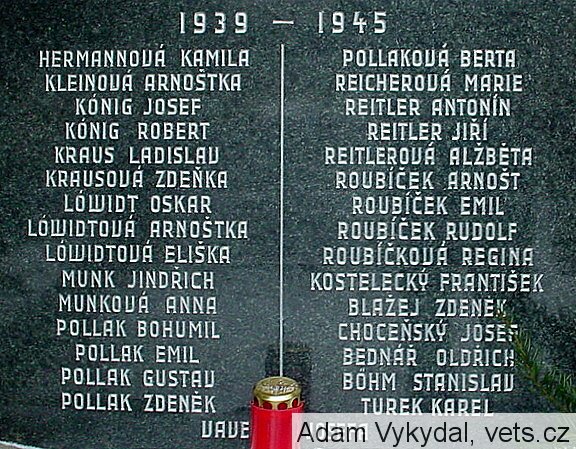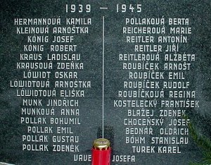 HERMANNOVÁ KAMILA, KLEINOVÁ ARNOŠTKA, KÓNIG JOSEF, KÓNIG ROBERT, KRAUS LADISLAV, KRAUSOVÁ ZDEŇKA, LÓWIDT OSKAR, LÓWIDTOVÁ ARNOŠTKA, LÓWIDTOVÁ ELIŠKA, MUNK JINDŘICH, MUNKOVÁ ANNA, POLLAK BOHUMIL, POLLAK EMIL, POLLAK GUSTAV, POLLAK ZDENĚK, POLLAKOVÁ BERTA, REICHEROVÁ MARIE, REITLER ANTONÍN, REITLER JIŘÍ, REITLEROVÁ ALŽBĚTA, ROUBÍČEK ARNOŠT, ROUBÍČEK EMIL, ROUBÍČEK RUDOLF, ROUBÍČKOVÁ REGINA, KOSTELECKÝ FRANTIŠEK, BLAŽEJ ZDENĚK, CHOCEŇSKÝ JOSEF, BEDNÁŘ OLDŘICH, BÖHM STANISLAV, TUREK KAREL, VAVEROVÁ JOSEFA