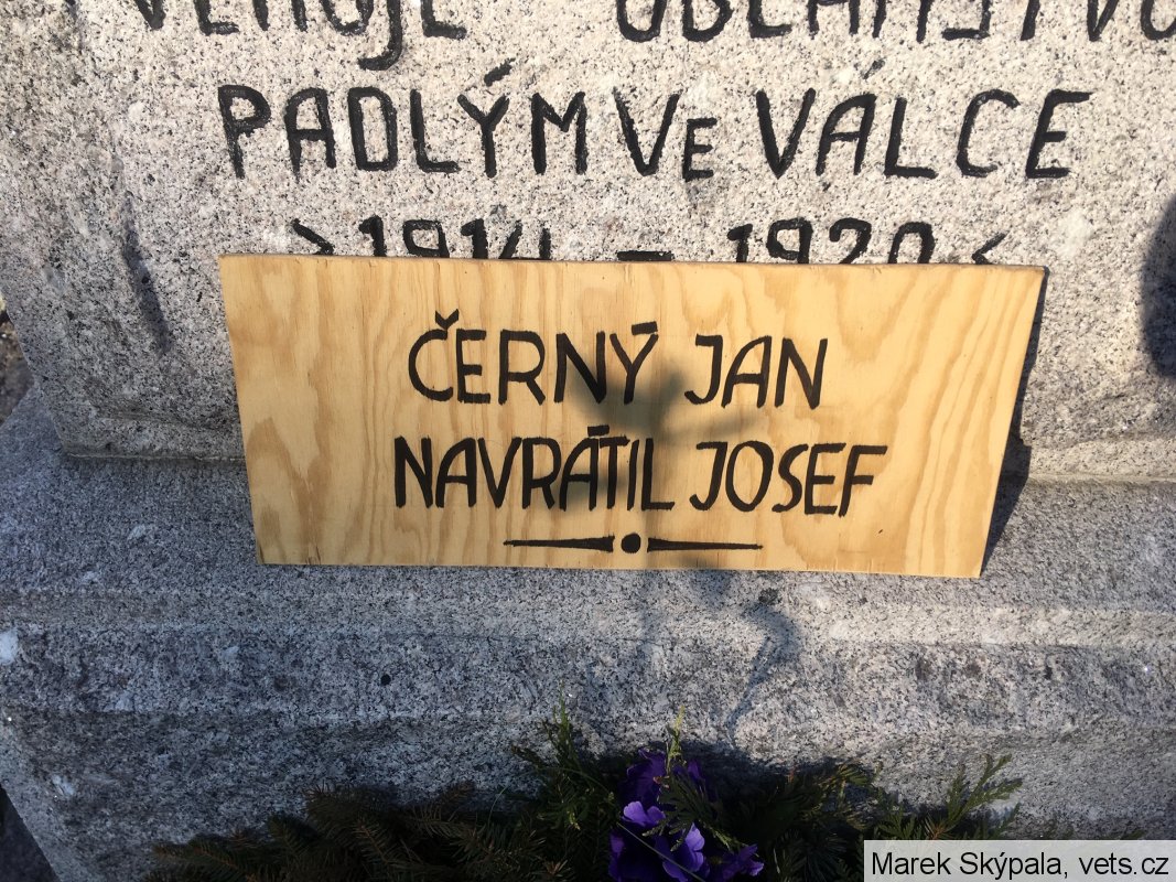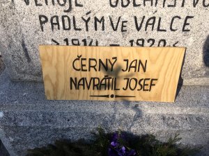 Destička se 2 jmény (Černý, Navrátil) byla k pomníku připojena v říjnu 2018.