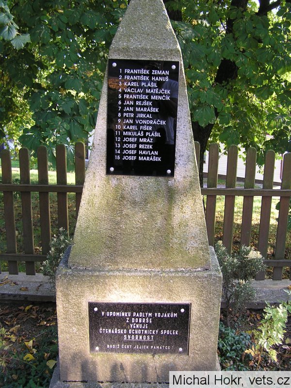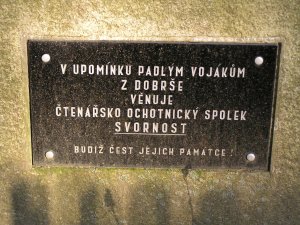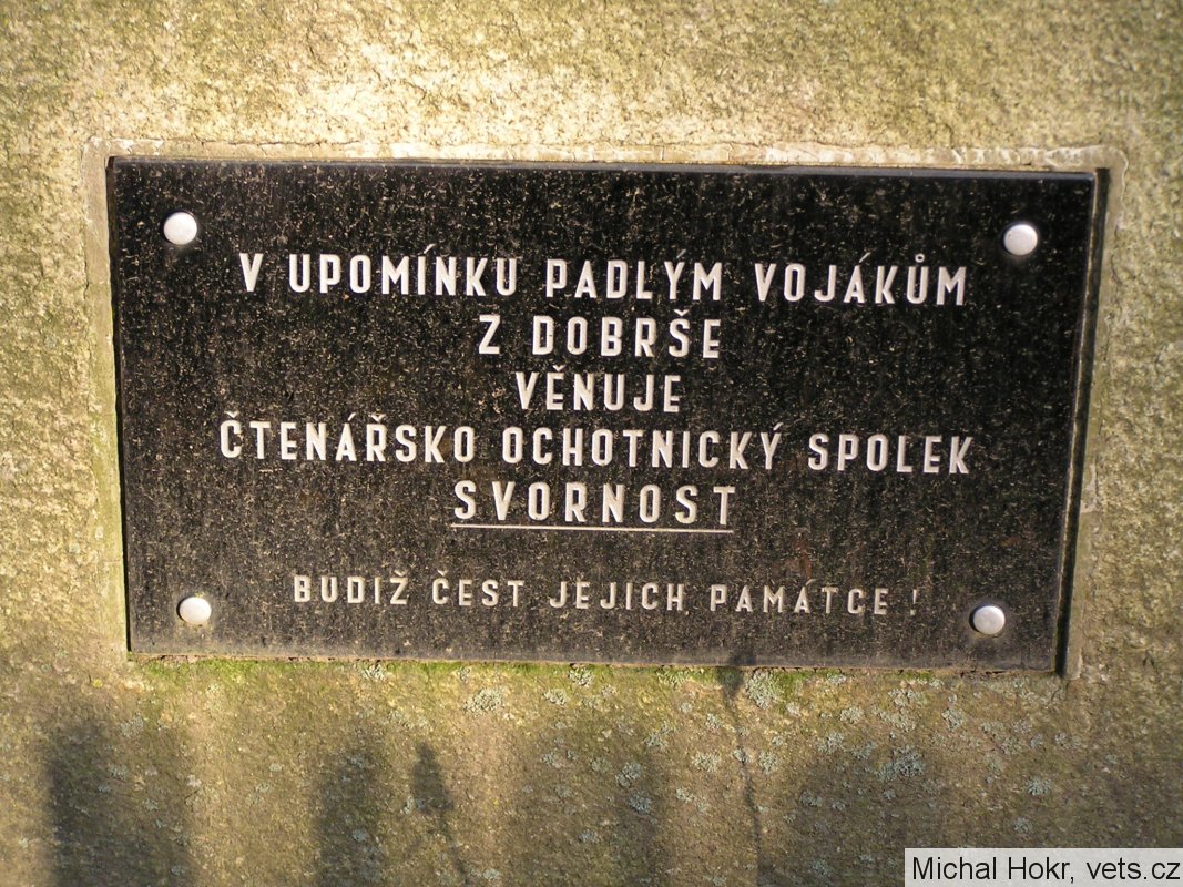 Umístění: Dobrš, na návsi uprostřed vsi, na straně ke kostelu Pany MarieNápis: