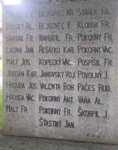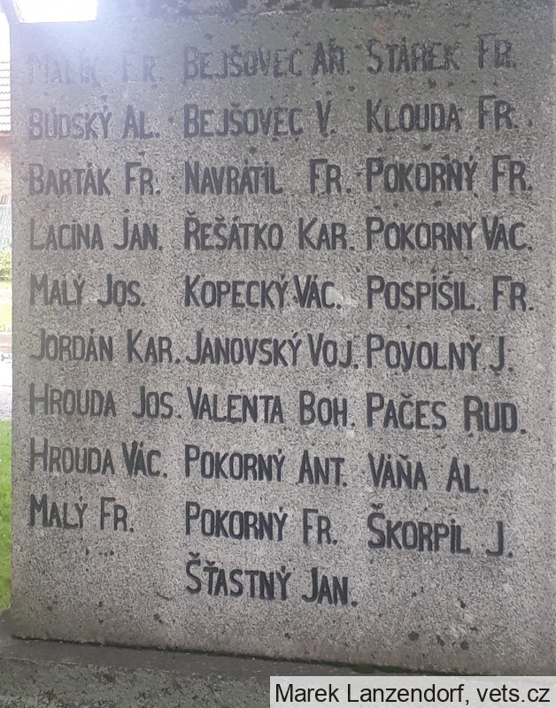 MALÍK FR., BEJŠOVEC AN., STÁREK FR., BUDSKÝ AL., BEJŠOVEC V., KLOUDA FR., BARTÁK FR., NAVRÁTIL FR., POKORNÝ FR., LACINA JAN, ŘEŠÁTKO KAR., POKORNÝ VÁC., MALÝ JOS., KOPECKÝ VÁC., POSPÍŠIL FR., JORDÁN KAR., JANOVSKÝ VOJ., POVOLNÝ J., HROUDA JOS., VALENTA BOH., PAČES RUD., HROUDA VÁC., POKORNÝ ANT., VÁŇA AL., MALÝ FR., POKORNÝ FR., ŠKORPIL J., ŠŤASTNÝ JAN.