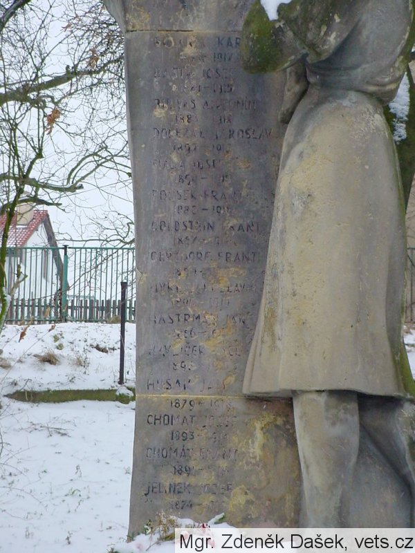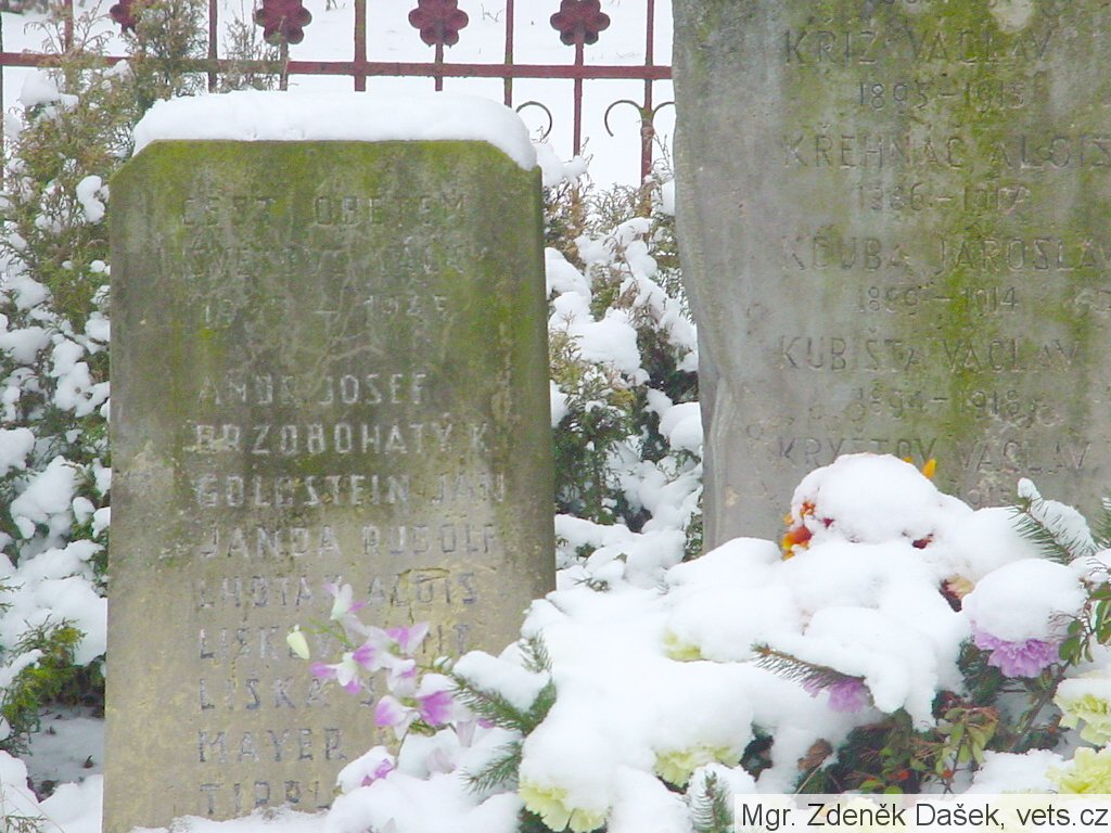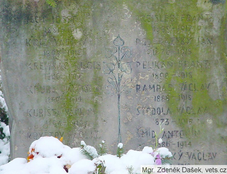 ?, ??, ??, DOLEŽAL JAROSLAV, ??, FOUSEK FRANT., GOLDSTEIN ??, ??, ??, HASTRAMAN JAN, ??, ??, CHOMAT JOSEF, CHOMÁT FRANT., JELÍNEK JOSEF, JECH JOSEF 1881-1914, KŘÍŽ VÁCLAV 1805-1915, KŘEHNÁČ ALOIS 1886.1917, KOUBA JAROSLAV 1889-1914, KUBIŠTA VÁCLAV 1894-1918, KRYŠTOV VÁCLAV ????-1915, PREISLER FRANT. 1899-1917, PODHRAZSKÝ JAN 1875-1915, PELIKÁN FRANT. 1898-1916, RAMPAS VÁCLAV 1888-1915, STODOLA VÁCLAV 1875-1915, ŠMÍD ANTONÍN 1886-1914, ??KÝ VÁCLAV ????-1918