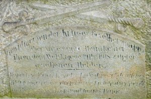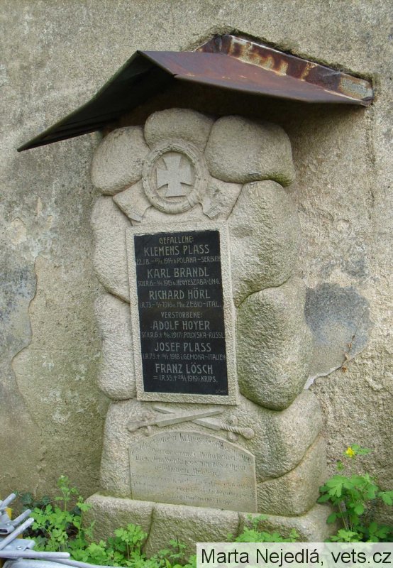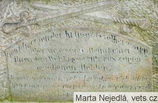 Chybí 3 řádky nečitelného textu dole na pomníku.