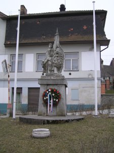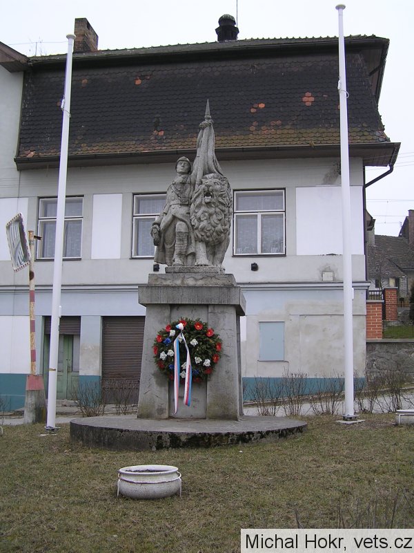 Jméno prof. F. Průša, Volyně je uvedeno pod sochou, pp. autor.