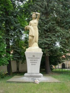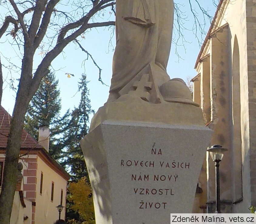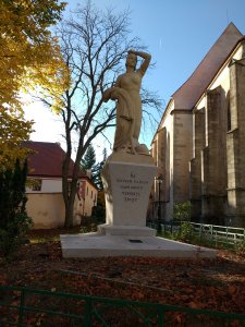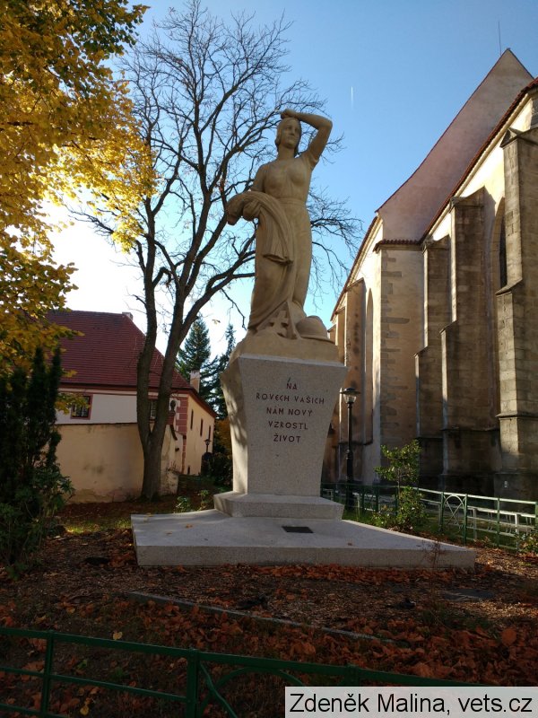 Socha byla nedávno restaurována do původní podoby - s rovem a helmou.