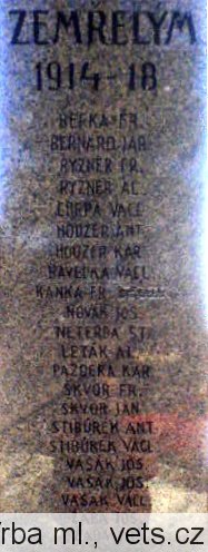 BERKA FR., BERNARD JAR., RYZNER FR., RYZNER AL., CHRPA VACL., HOUZER ANT., HOUZER KAR., HAVELKA VÁCL., KAŇKA FR., NOVÁK JOS., NETERDA ST., LETÁK AL., PAZDERA KAR., ŠKVOR FR., ŠKVOR JAN., STIBŮREK ANT., STIBŮREK VÁCL., VAŠÁK JOS., VAŠÁK JOS., VAŠÁK VÁCL., ŽABA JOS., ŽABA FR.