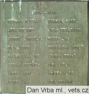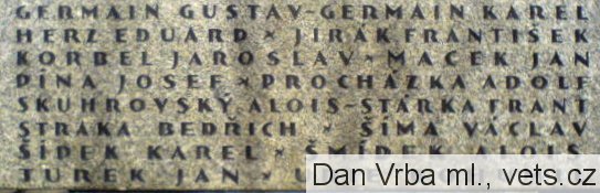GERMAIN GUSTAV, GERMAIN KAREL, HERZ EDUARD, JIRÁK FRANTIŠEK, KORBEL JAROSLAV, MACEK JAN, DÍNA JOSEF, PROCHÁZKA ADOLF, SKUHROVSKÝ ALOIS, STÁRKA FRANT., STRAKA BEDŘICH, ŠÍMA VÁCLAV, ŠÍDEK KAREL, ŠMÍDEK ALOIS, TUREK JAN,URIE BOHUMIL