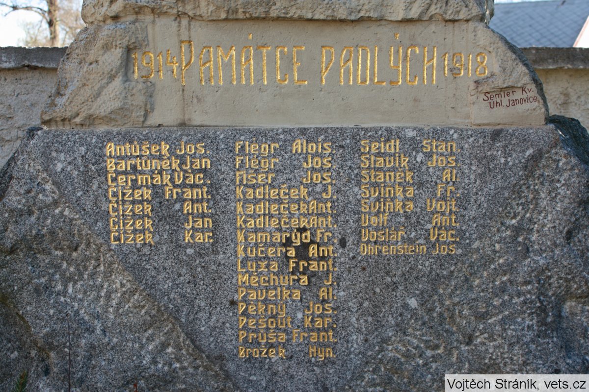 autor pomníku: Semler Kv., Uhl. Janovice