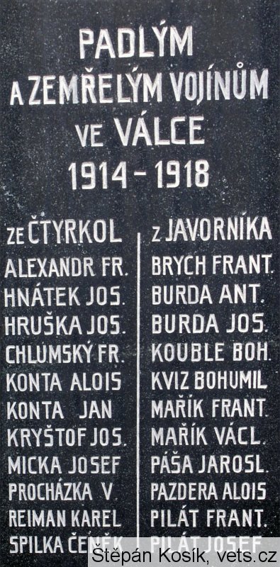 Umístění: Čtyřkoly, vlevo na silnici cca 150 metrů od obecního úřadu u domu (se zahradou) č. 59Nápis: