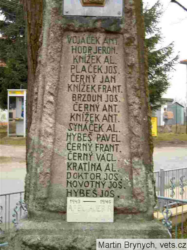 VOJÁČEK ANT., HODR JERON., KNÍŽEK AL., PLAČEK JOS., ČERNÝ JAN., KNÍŽEK FRANT., BRZOUN JOS., ČERNÝ ANT., KNÍŽEK ANT, SYNÁČEK AL., HYBEŠ PAVEL., ČERNÝ FRANT., ČERNÝ VÁCL., KRATINA AL., DOKTOR JOS., NOVOTNÝ JOS., HYBEŠ JOS.