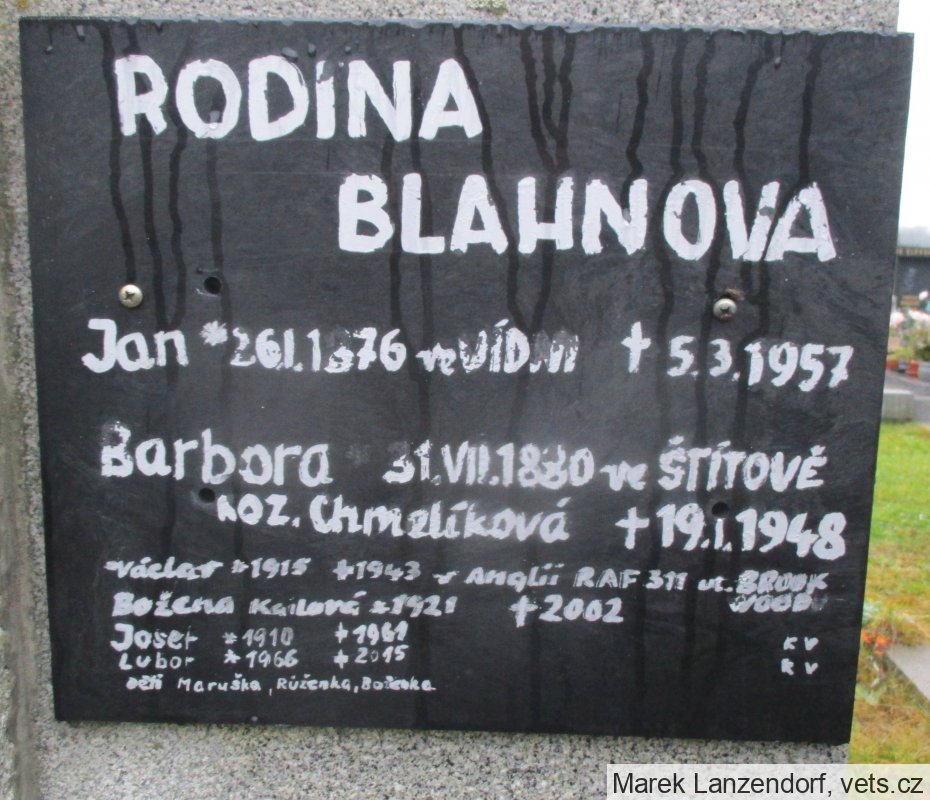 Václav *1915 +1943 v Anglii RAF 311 ul. BROOKWOOD