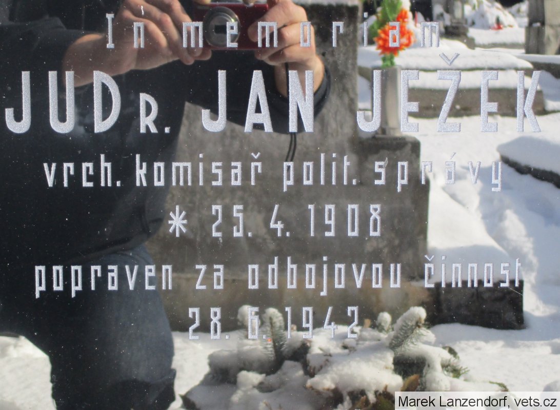 JUDr. Jan Ježek, nar. 1908, přednosta okresního úřadu v Nymburce (dosazen do funkce po vyklizení pohraničí). Popraven byl za údajné schvalování atentátu na R. Heydricha v neděli 28.6.1942 v pardubickém Zámečku.