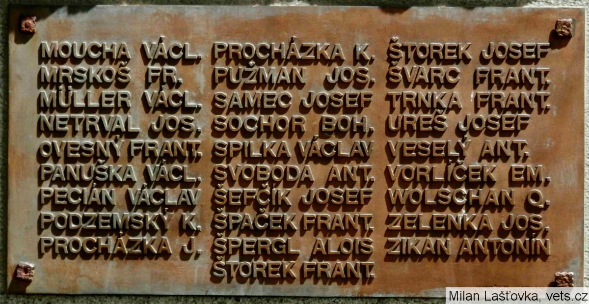 Seznam obětí ověřen dle detailů na portálu CEVH MO ČR. Autor sochy V. Zeilman, desky odlity V. Mašek Karlín.